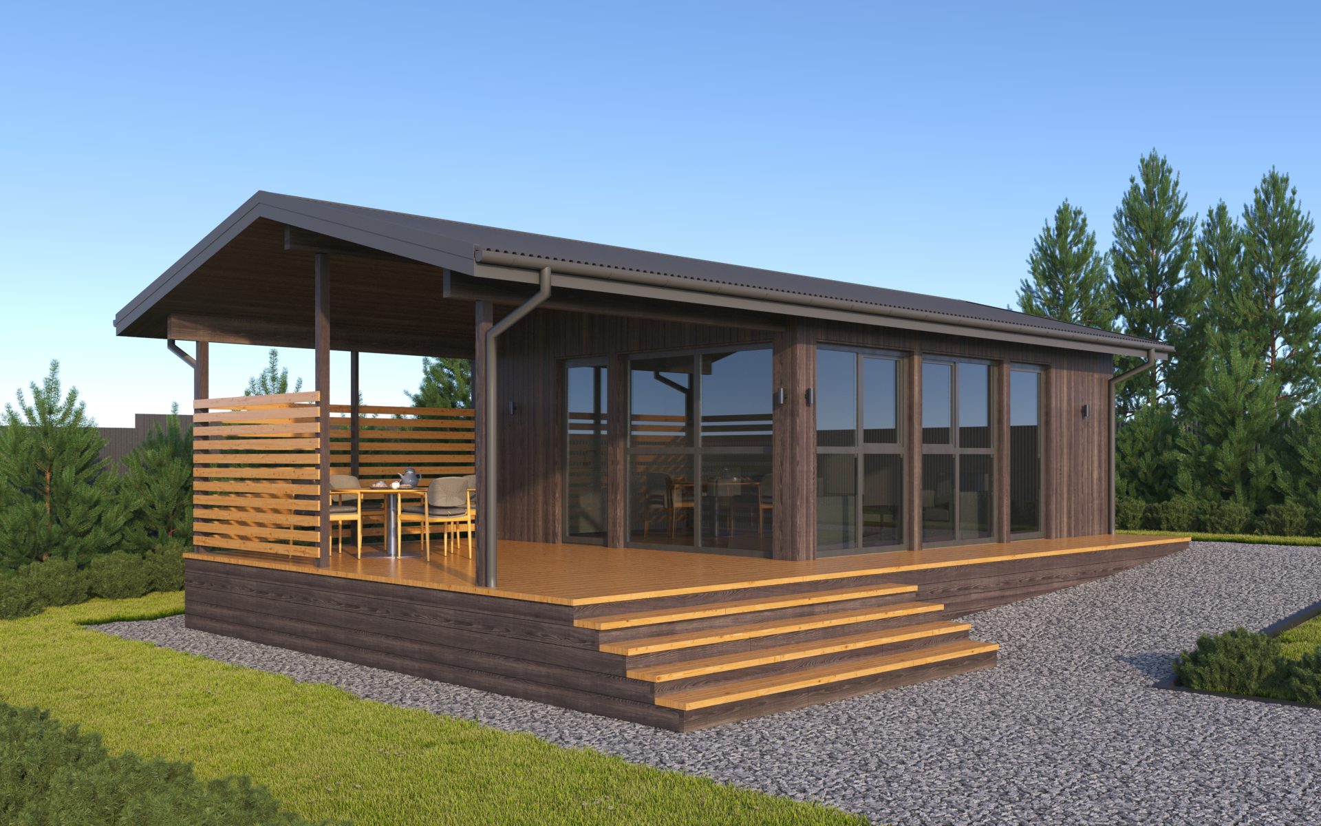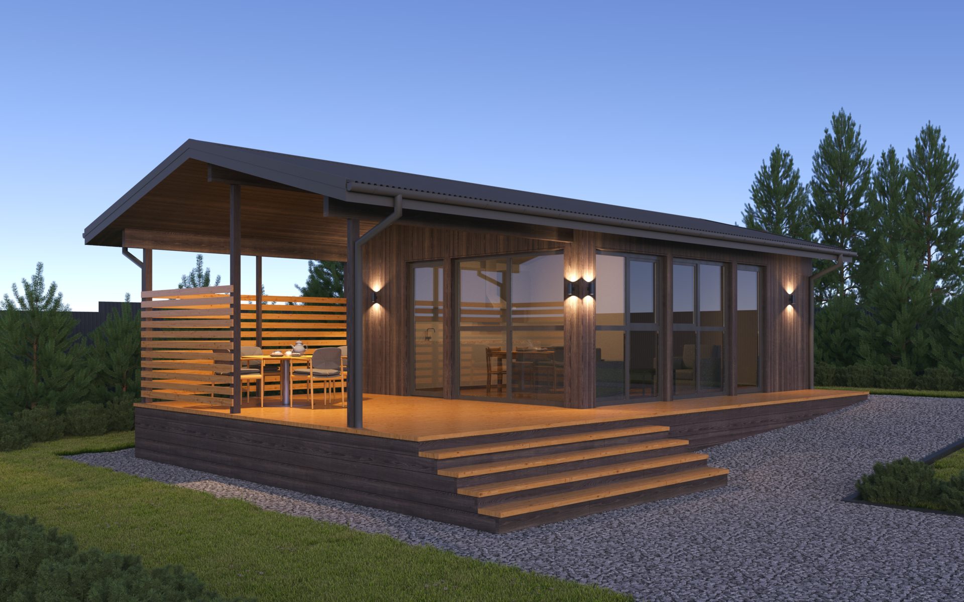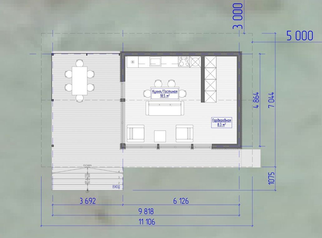 Жилая площадь составляет 28 квадратных метров, плюс небольшая терраса. Большая кухня гостиная и гардеробная. Все, что пожелал наш заказчик для этого уютного гнездышка. Стильный, небольшой и современный дом в стиле барнхауса.