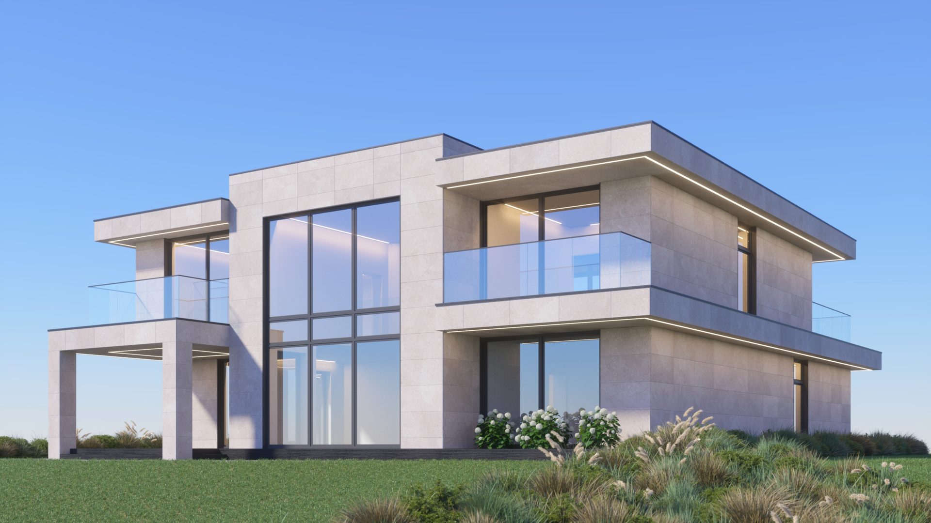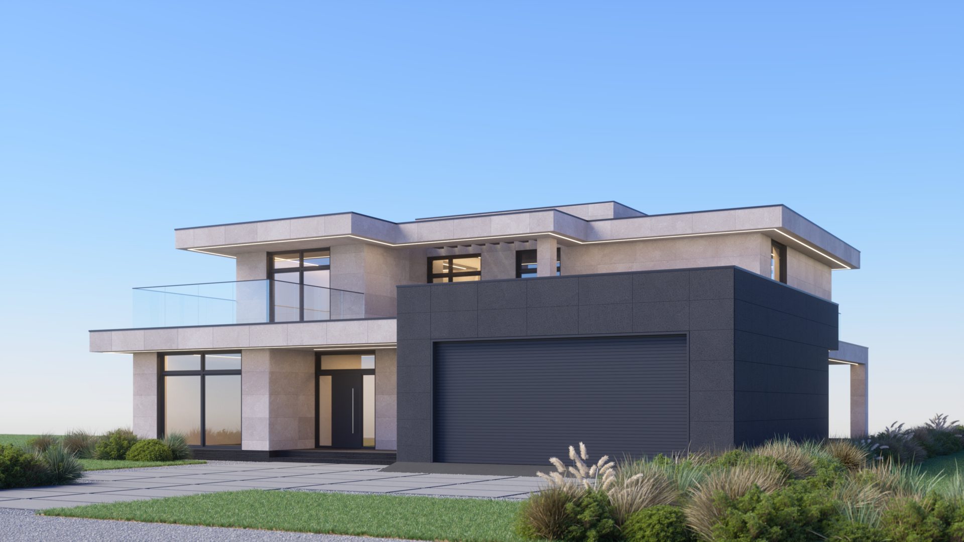 Наш самый большой проект за 2023 год. Двухэтажный дом из газобетона площадью 321 кв.м. в современном стиле со вторым светом и плоской крышей. Над созданием архитектуры работал наш архитектор, а вот разработка планировочных решений велась совместно с командой дизайн-студии Игоря Комарова. Нам удалось учесть абсолютно все и даже больше!