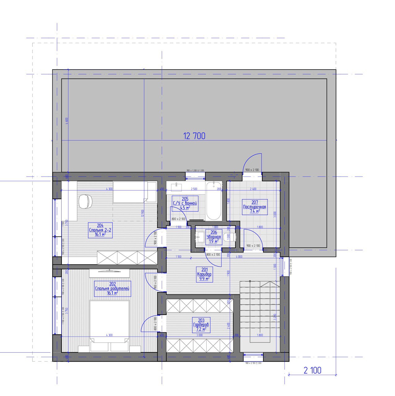 Дом из газобетона двухэтажный 170 кв.м. House box 170 разрабатывался индивидуально для участка с большим перепадом в пятне застройки. В качестве пожеланий заказчиков мы учли современный архитектурный стиль, лаконичную, но при этом комбинированную отделка фасада, что визуально делает архитектуру богаче. Также при проектировании планировочных решений были учтены сложности рельефа, которые по итогу стали преимуществом этого проекта.