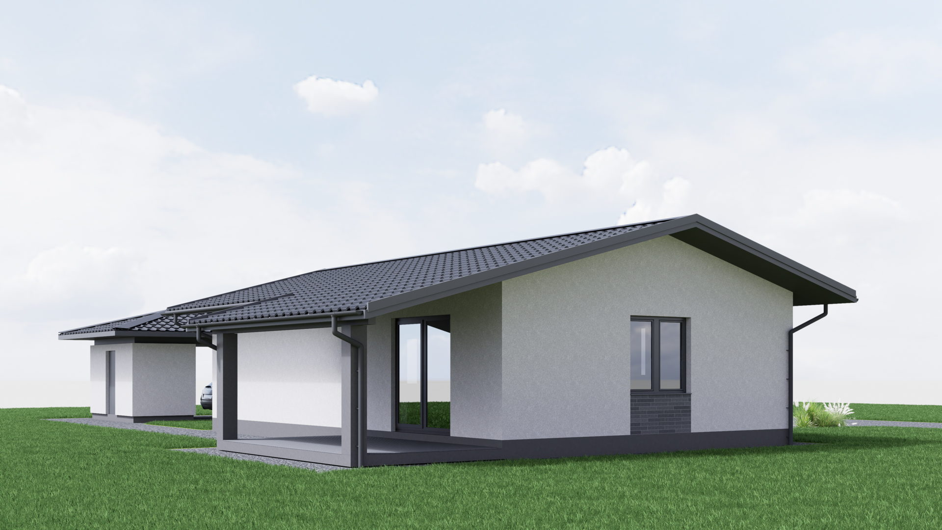 Этот компактный проект дома из газобетона площадью около 70 кв. м. с 1 этажом, террасой и без мансарды разрабатывался для заказчиков, в первую очередь как загородный формат для проведения выходных с возможным переездом на постоянную основу в будущем. Лаконичная, аккуратная архитектура, которая идеально вписывается на участок в любой локации.