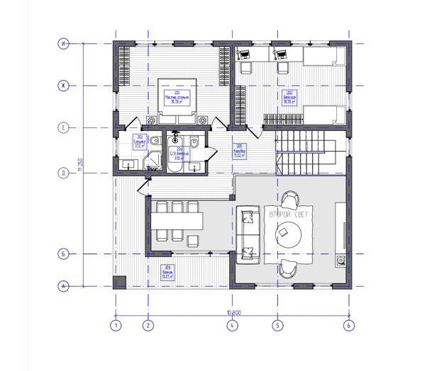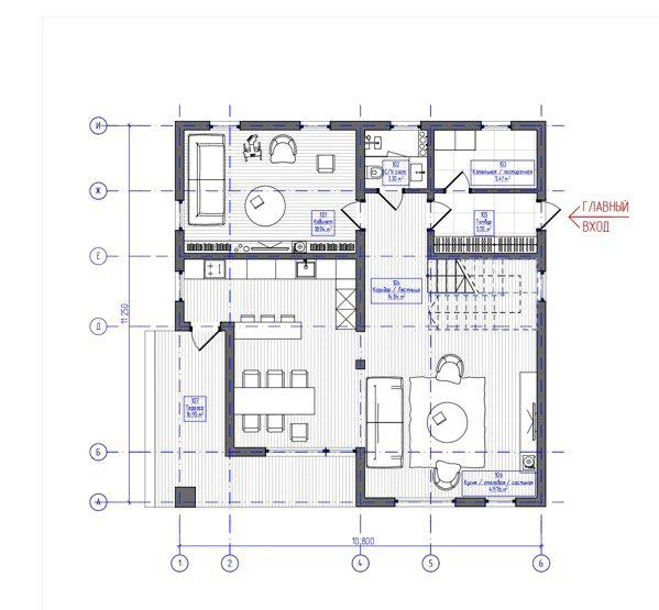 Панорамное остекление, второй свет, плоская крыша, веранда с крытым навесом, комбинированный фасад с использованием планкена и декоративной штукатурки. Три санузла, спальня родителей, детская, кухня-гостиная, кабинет. Все, что нужно для того, чтобы уединиться с природой от шумной суеты мегаполиса.
