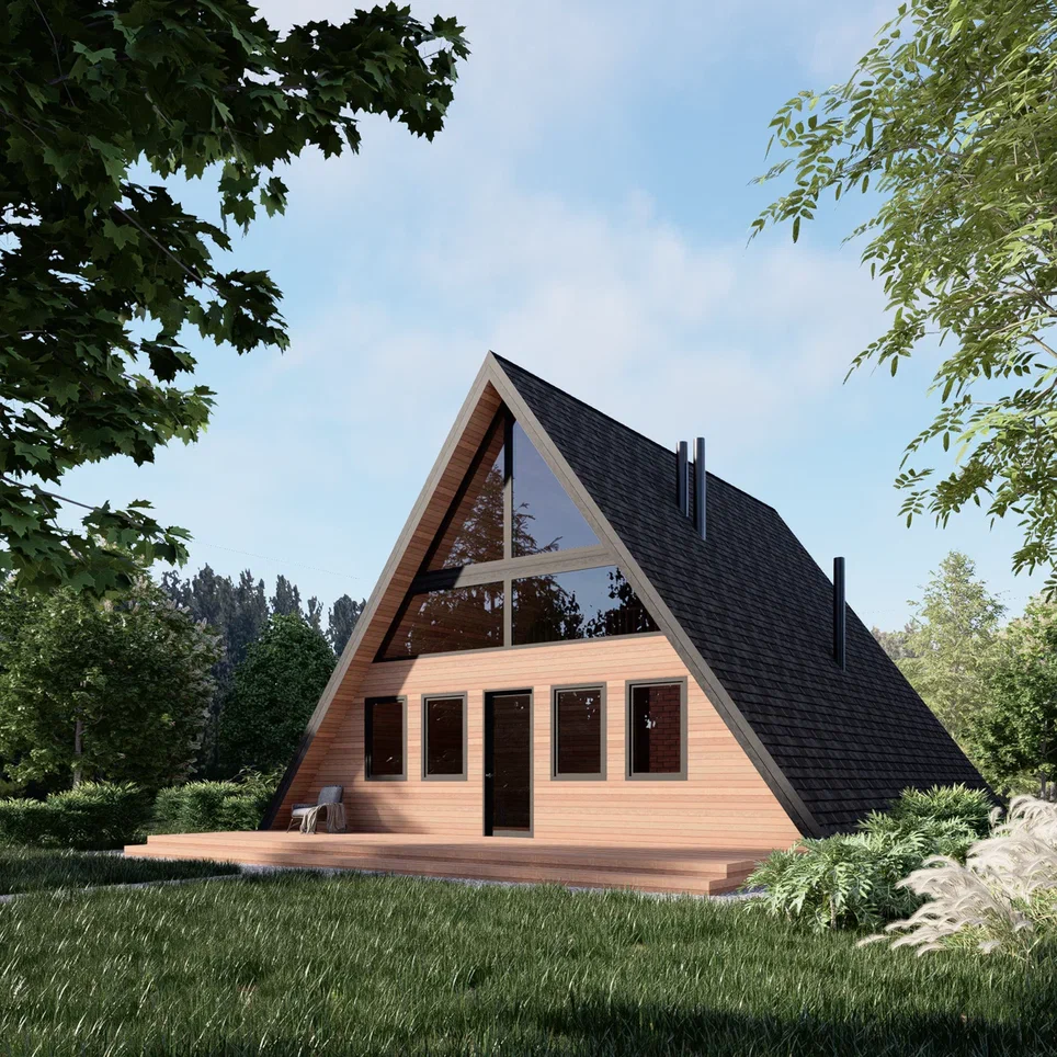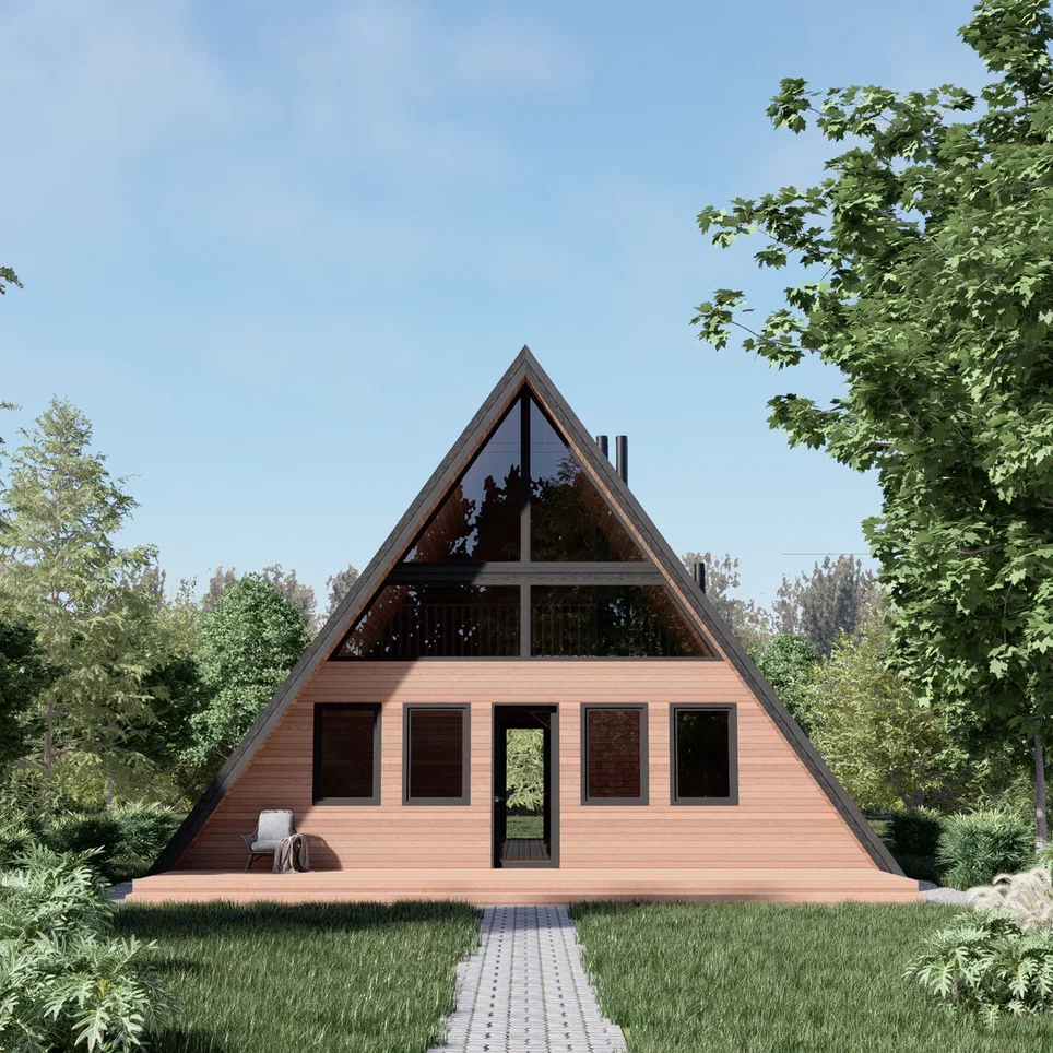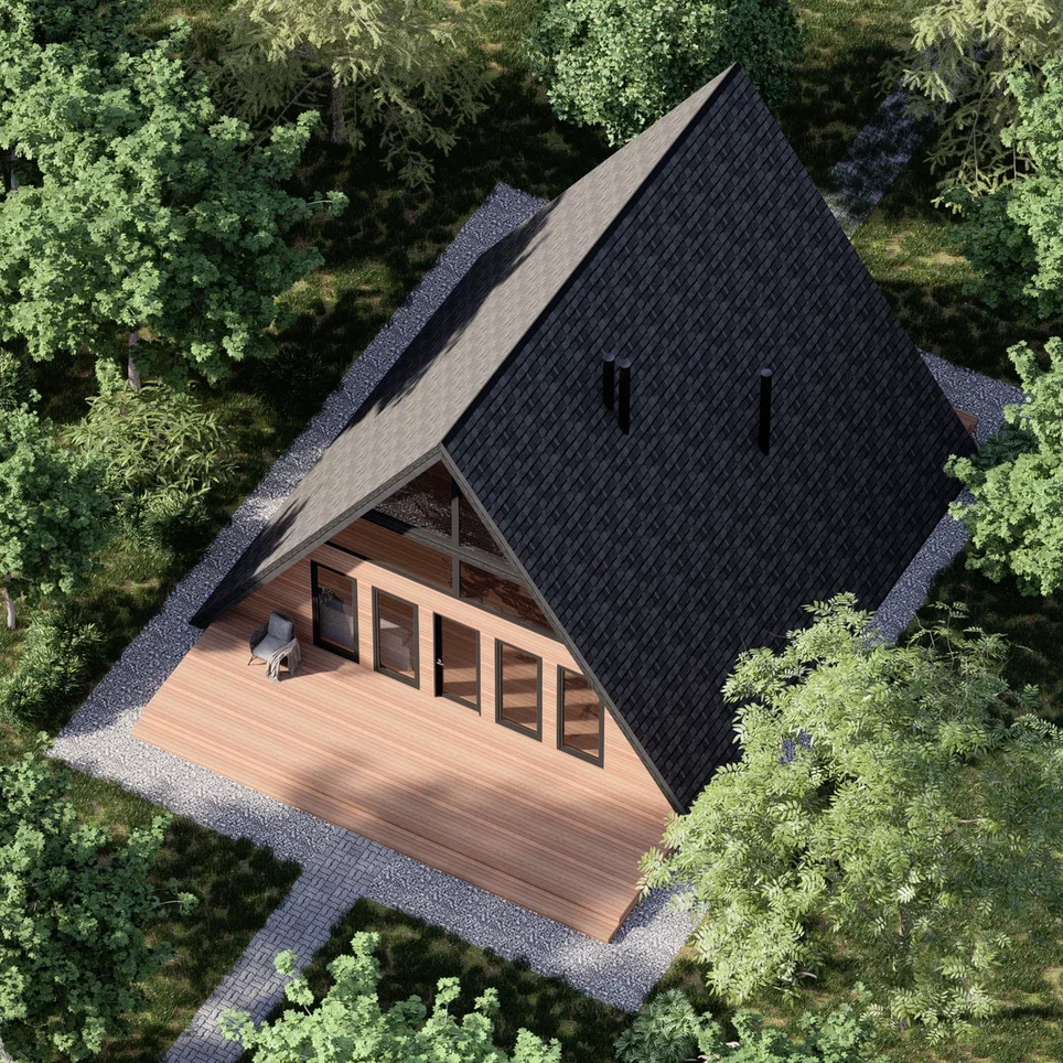 Стильный современный энергоэффективный каркасный дом в стиле A-frame house3