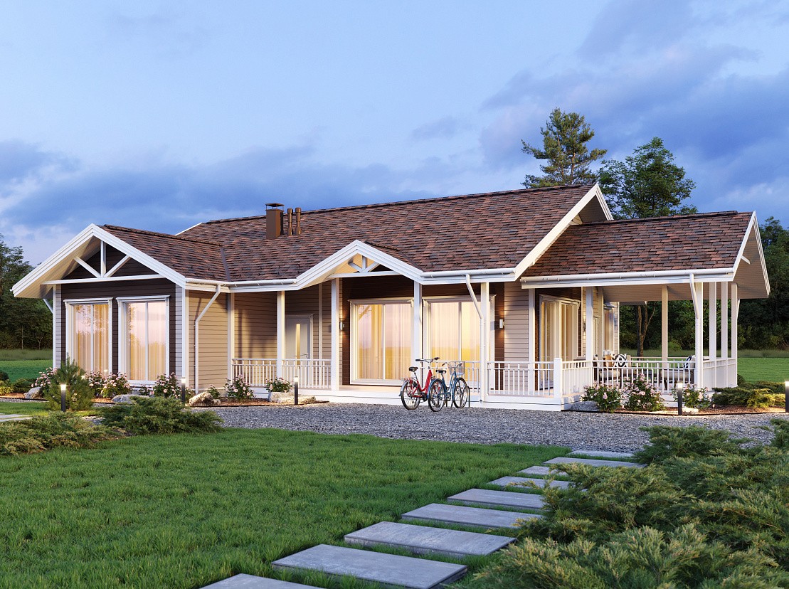 AXIOM 120-5 — это дом, в котором вам не придется подниматься на второй этаж, чтобы позвать всех близких на обед. Благодаря своей планировке он создает ощущение чего-то безграничного, но при этом удобного: три отдельные широкие спальни, кухня-столовая, большая гостиная, две ванные комнаты с санузлом.
