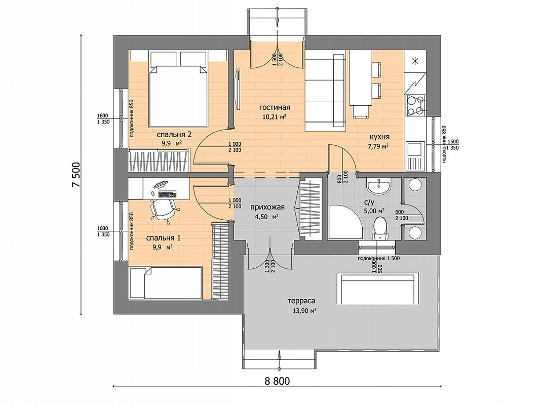 Несмотря на компактную квадратуру, в доме есть две светлые жилые комнаты и кухня-студия, которая совмещается с уютной гостиной, санузел. Выбирайте дом AXIOM 40-1 и начинайте жить по своим правилам. Здесь можно шуметь до утра, спать в тишине до обеда и наконец-то испытать сабвуфер на всю громкость. Знаем, вы об этом постоянно думаете.