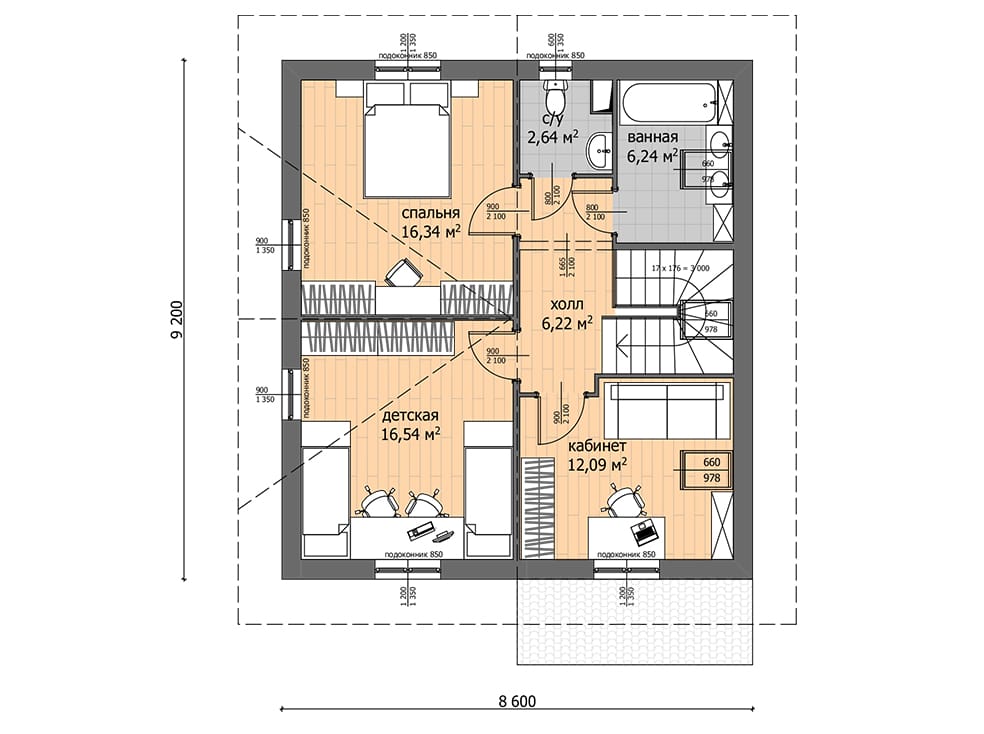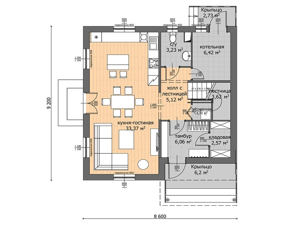 | Габаритные размеры дома | 9,2х8,6м |
