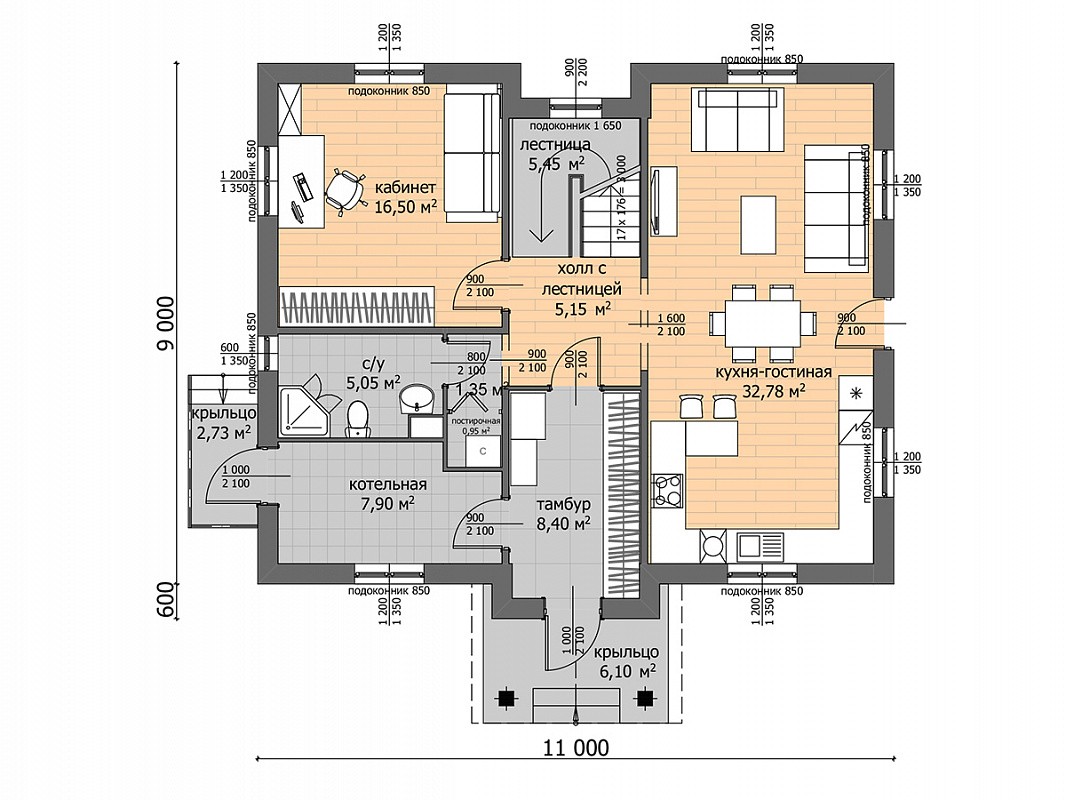 | Габаритные размеры дома | 11х9,6м |