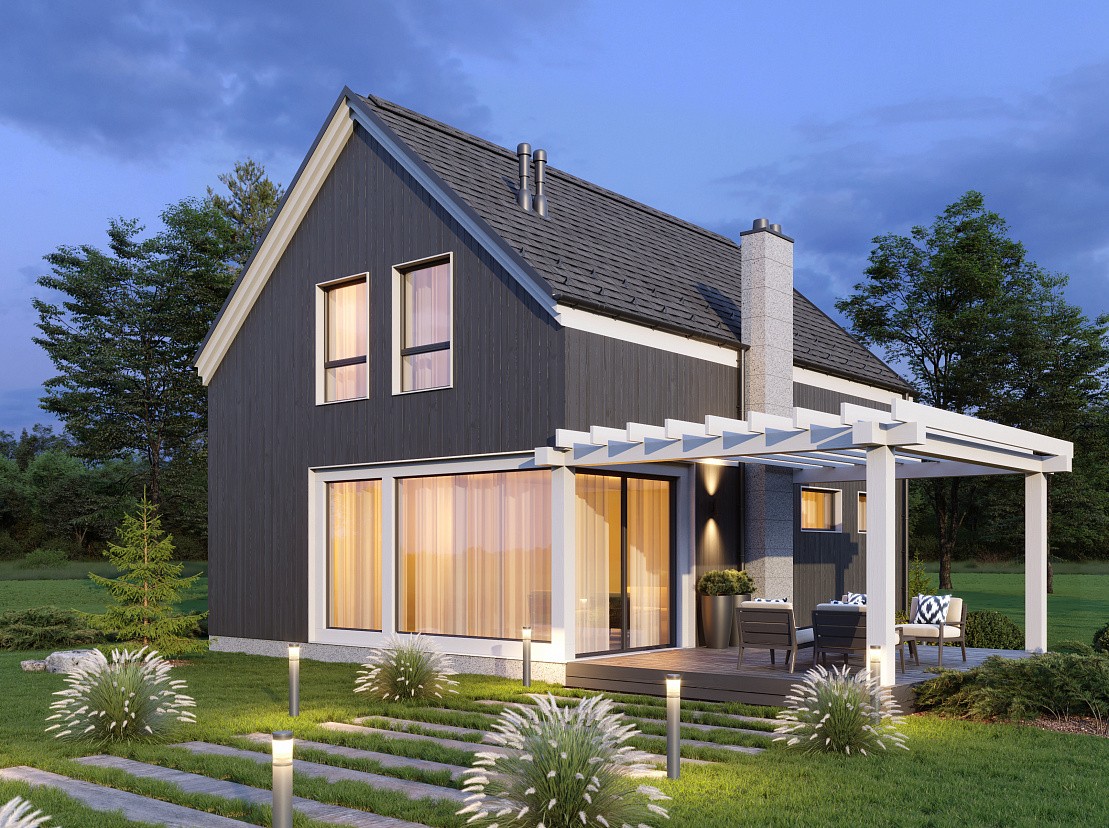 Может ли быть уютно в большом доме? Конечно, если это SIMPLEX 100-2 для вашей дружной семьи. Две отдельные спальни, две детские комнаты, по одному санузлу на каждом этаже, очень просторная кухня-гостиная, которая занимает практически весь первый этаж. Центр притяжения для всей семьи — это камин, который создаст атмосферу уюта и доверия, ведь у него так приятно коротать зимние вечера. А в летние дни вы будете сидеть на террасе (почти 20 м²!) и пить домашний лимонад.