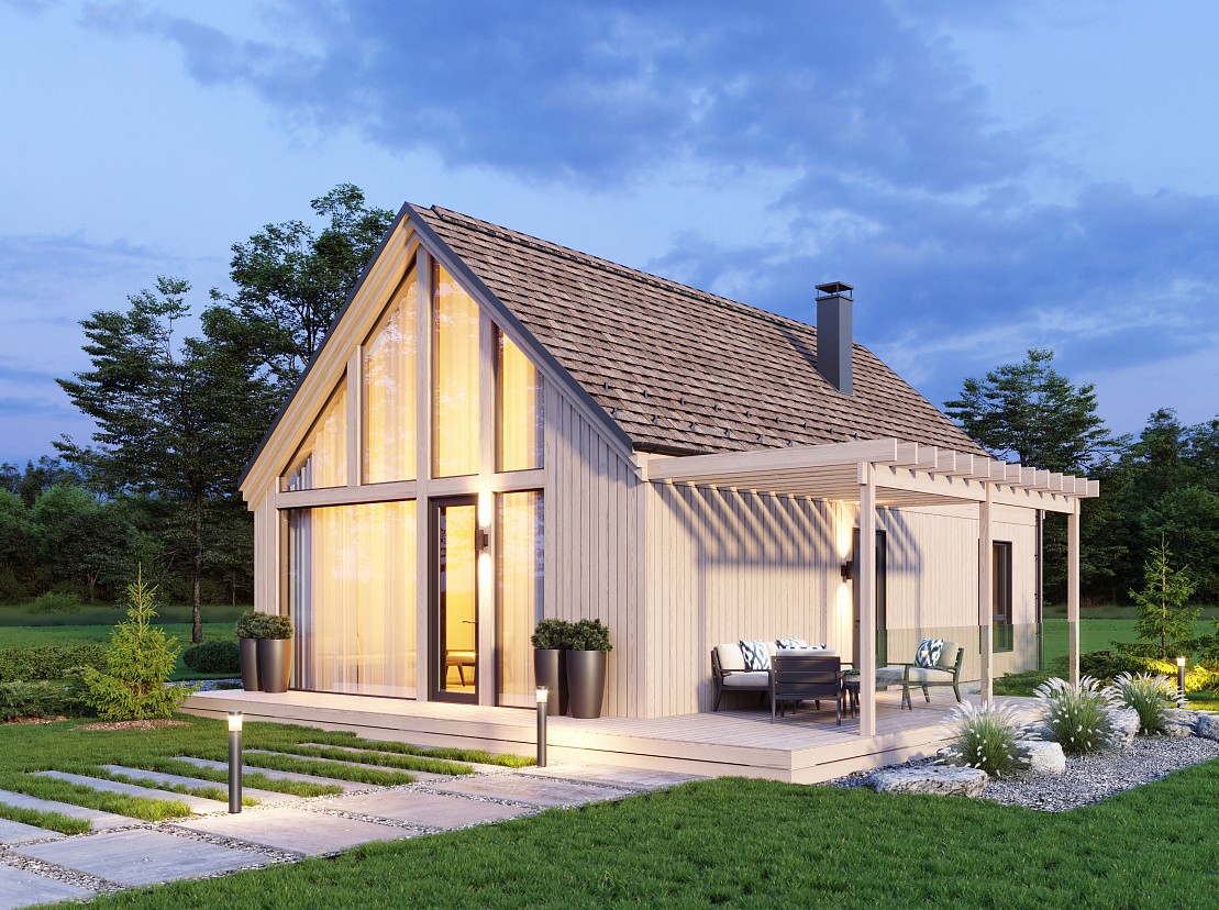 Первый этаж SIMPLEX 100-3 очень функционален и удобен, здесь все под рукой и выдержано в скандинавском стиле. Две просторные спальни, санузел и большая кухня-гостиная с витражным остеклением и выходом на террасу — здесь всегда будет много света.