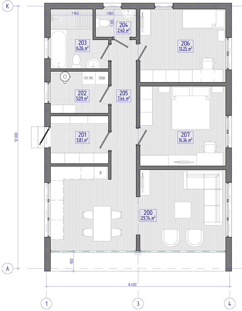 Этот дом идеально подойдет для небольшой семьи из 4 человек.
