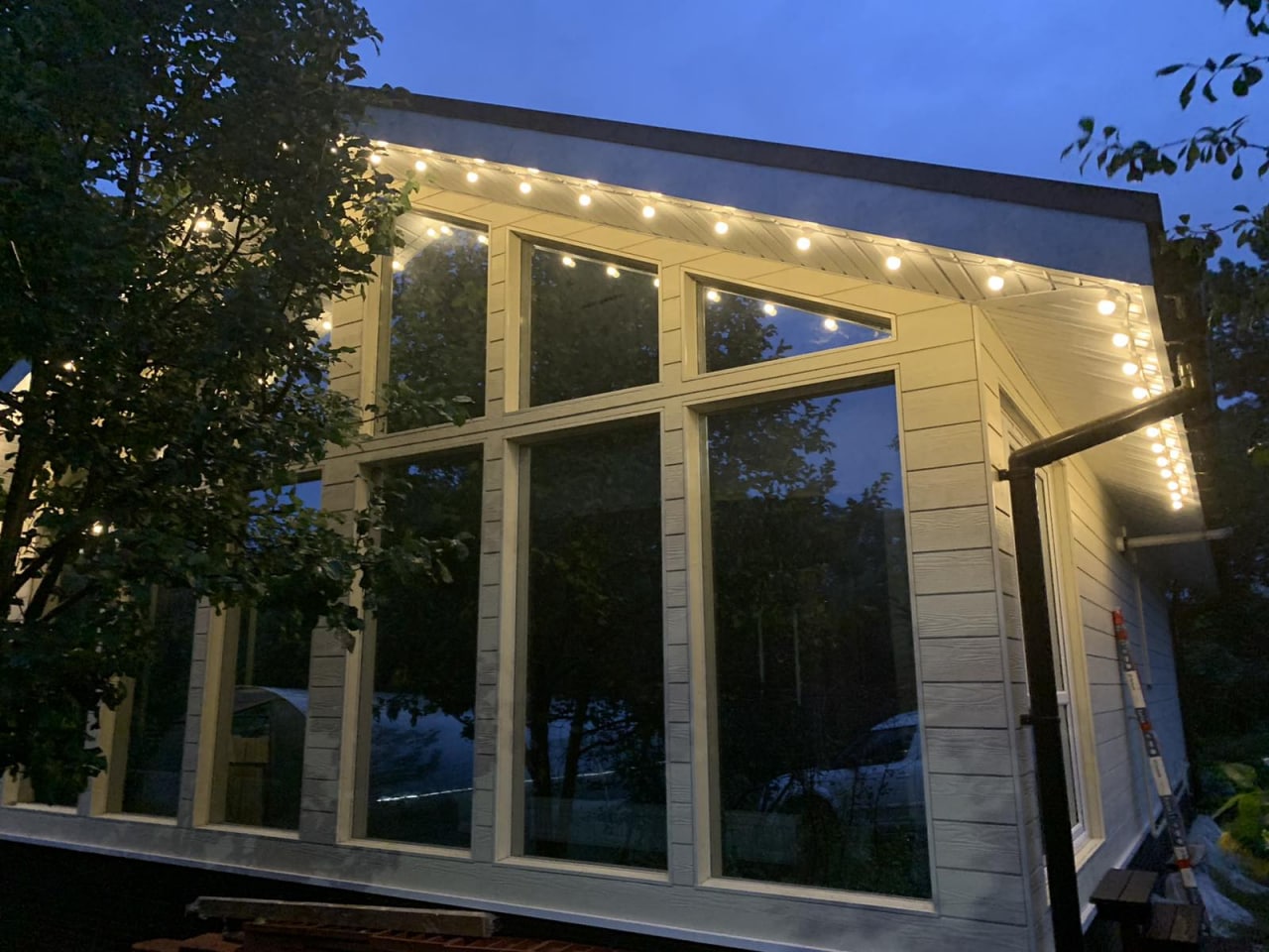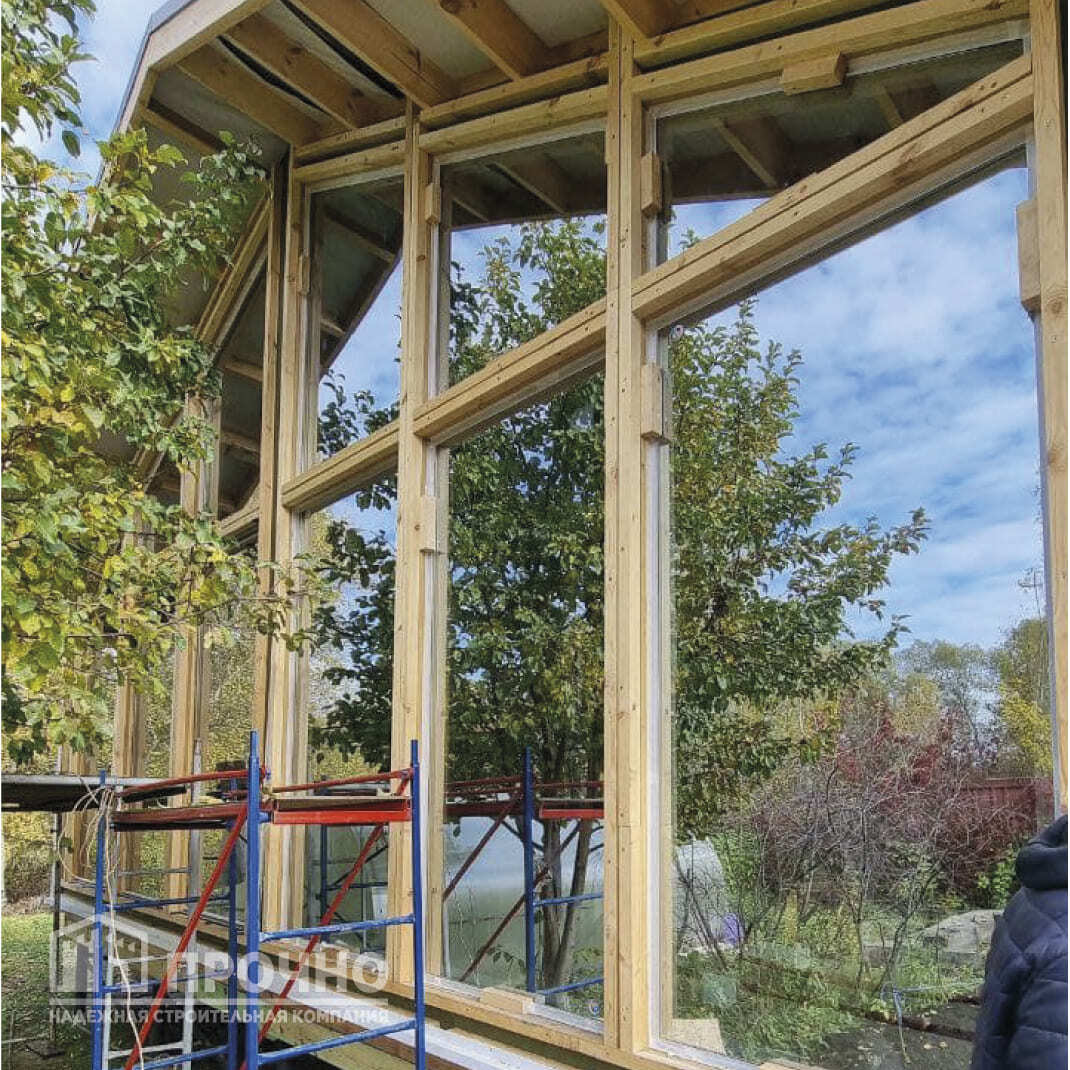 Произвели монтаж окон, в т.ч. панорамного безрамочного остекления, и дверей.